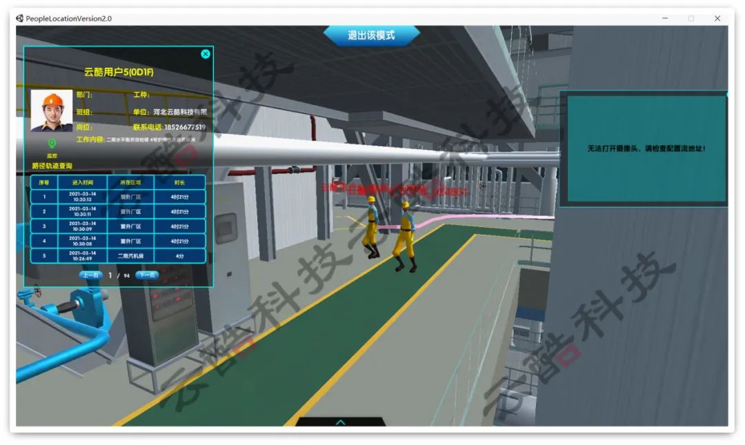 用戶通過系統可查詢任意人員在任意時間內的歷史軌跡。歷史軌跡由人員行走的路線軌跡和進出各區域及各建筑物的歷史時間列表構成,可聯動對應的歷史時間段的視頻監控一起播放,全方位還原當時的真實情況。