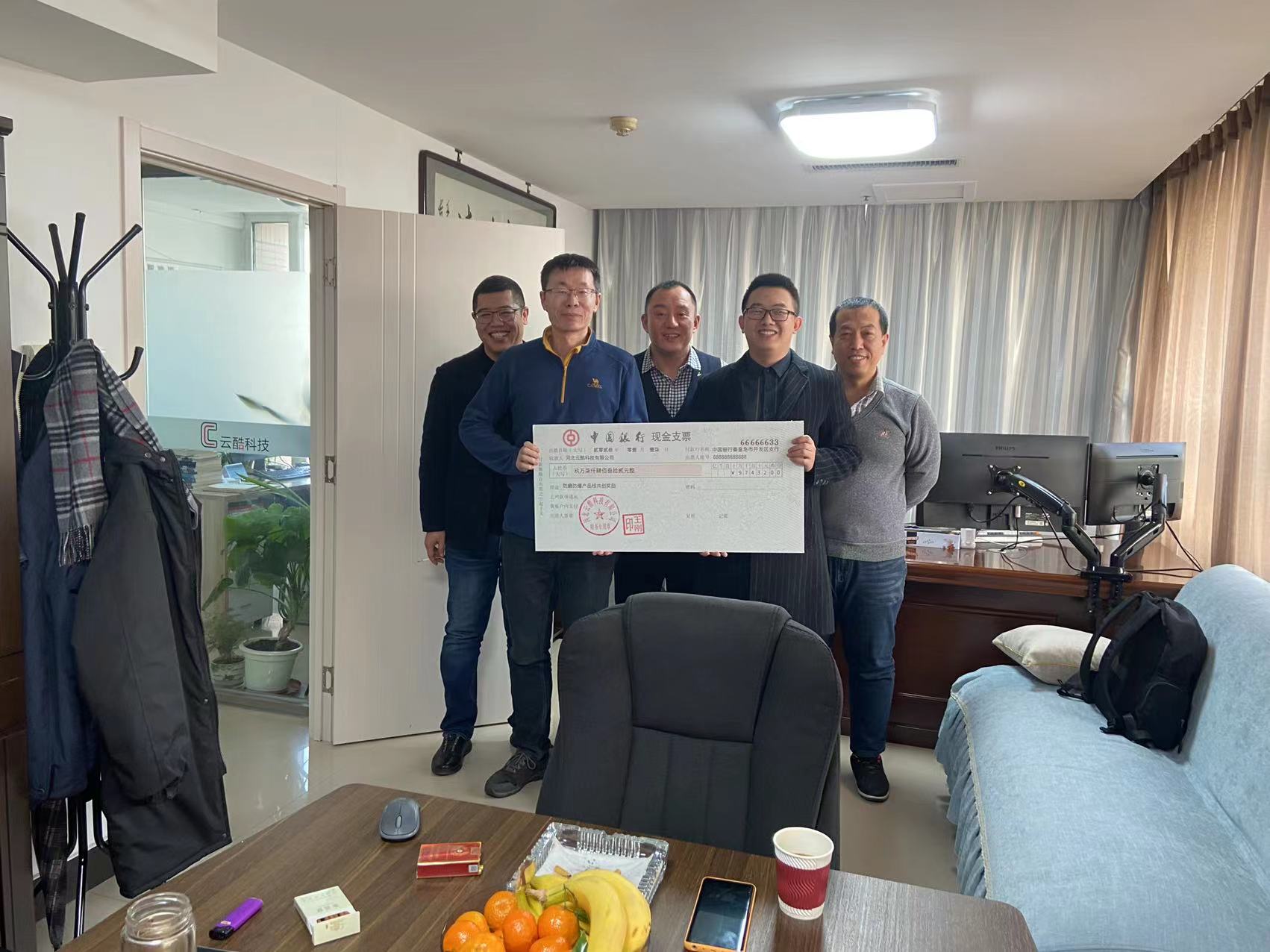 這是公司實踐的合伙人制度第四年,會議上王總及尹總、于總為共創合伙人團隊代表發放共創獎金。